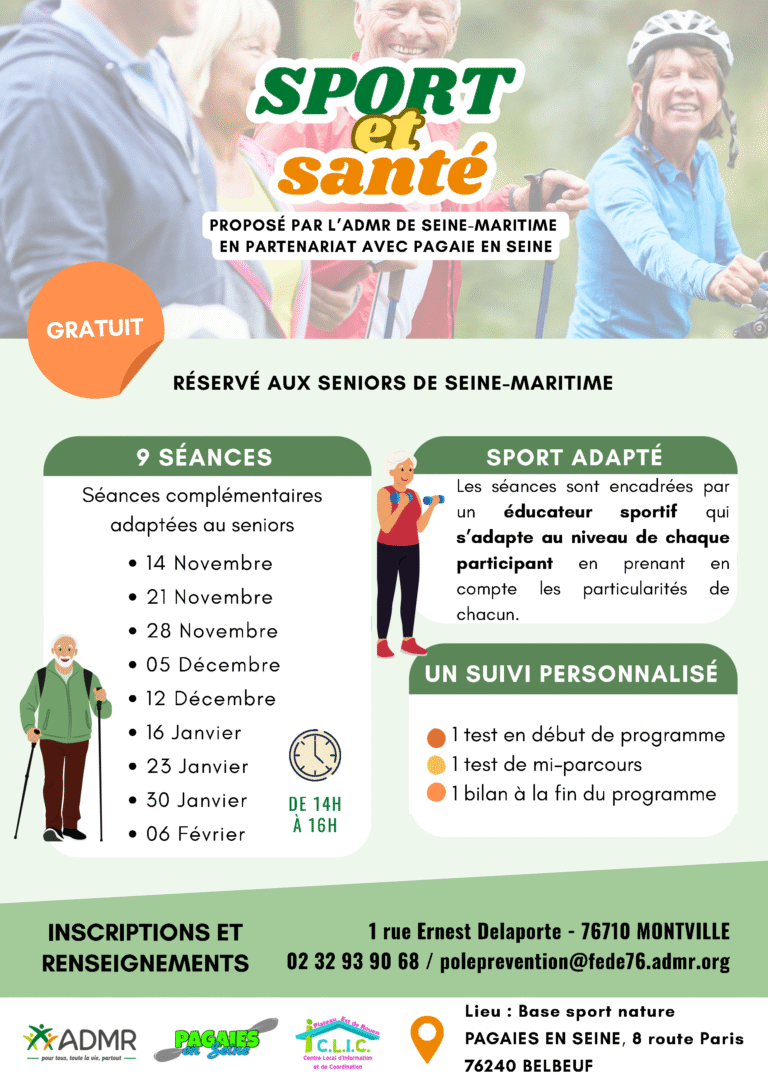 En partenariat avec la fédération ADMR et Pagaies en Seine, le projet « Sport Santé Seniors » est mis en place en faveur des seniors de Seine-Maritime.