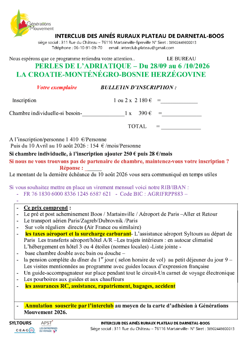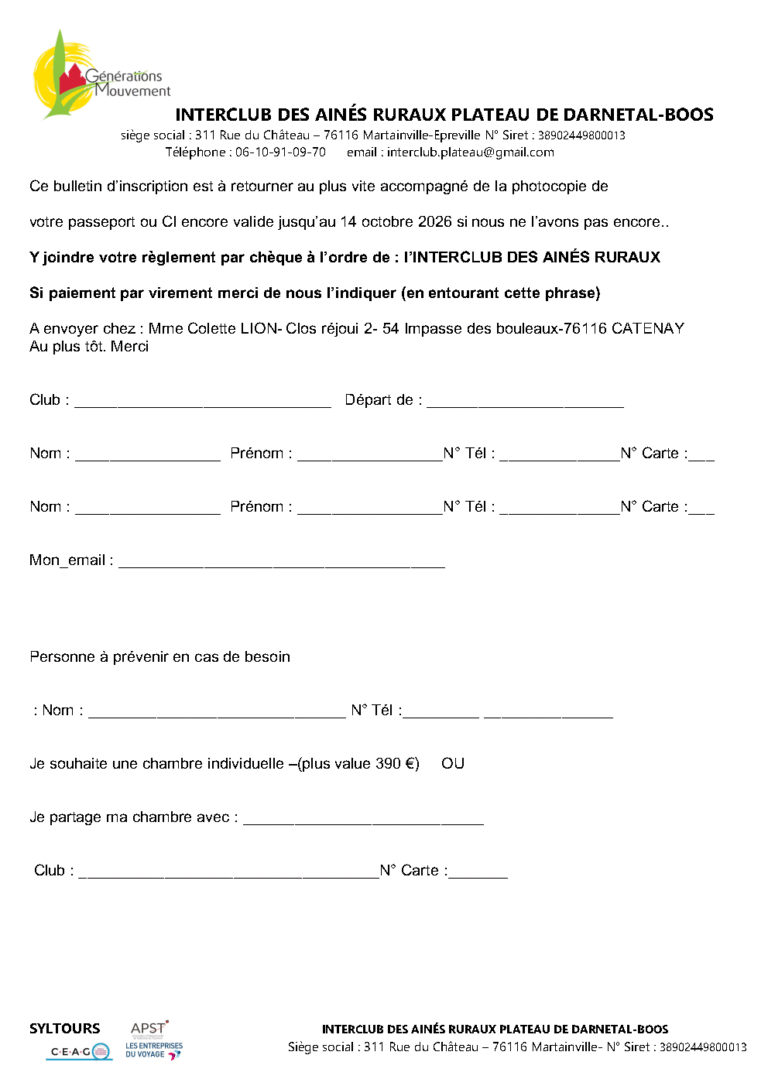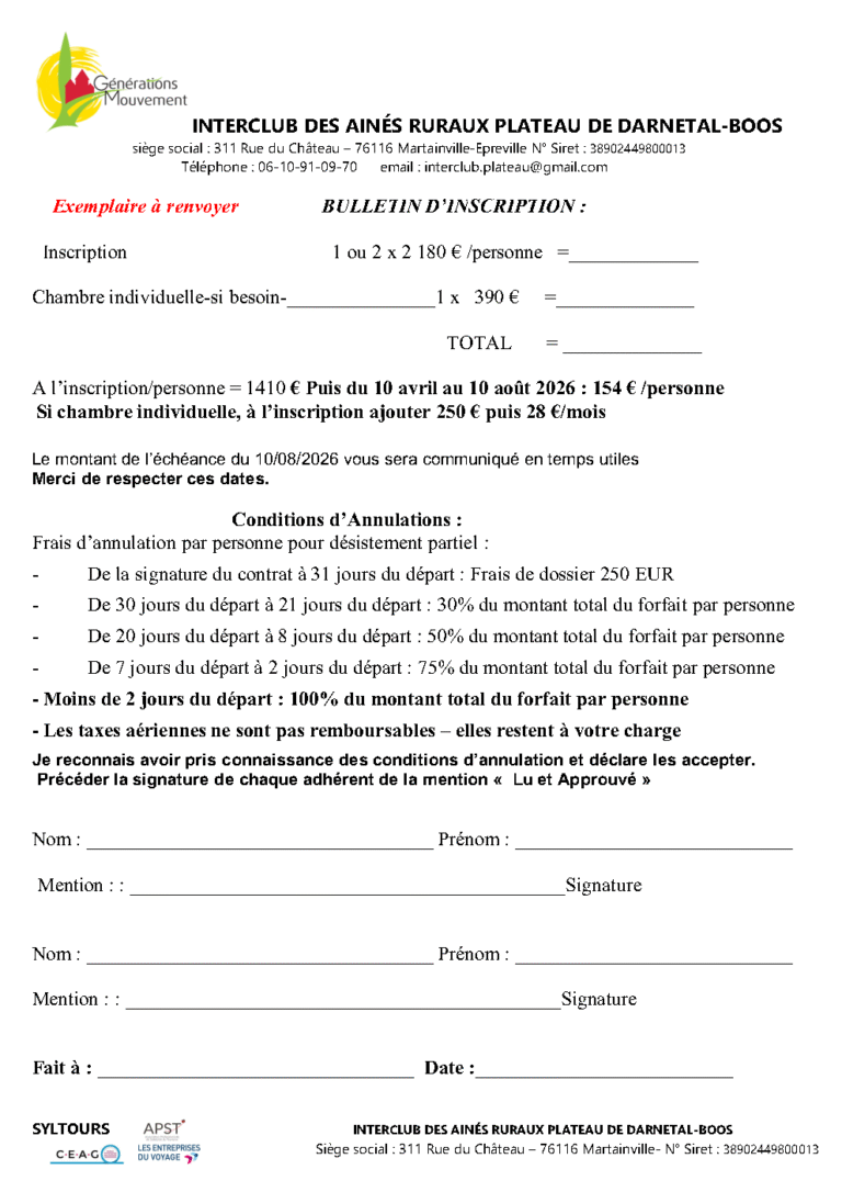 Bulletin d'inscription