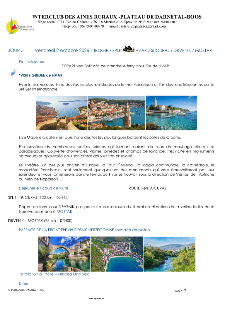 PERLES DE L’ADRIATIQUE 9 Jours