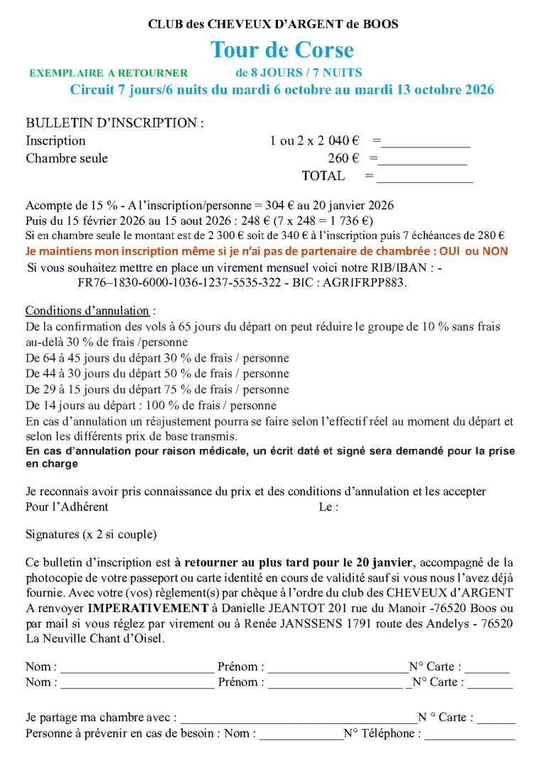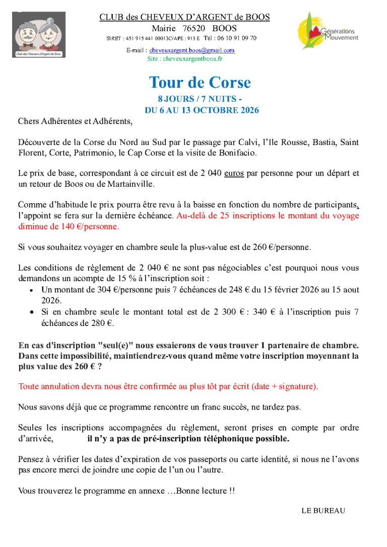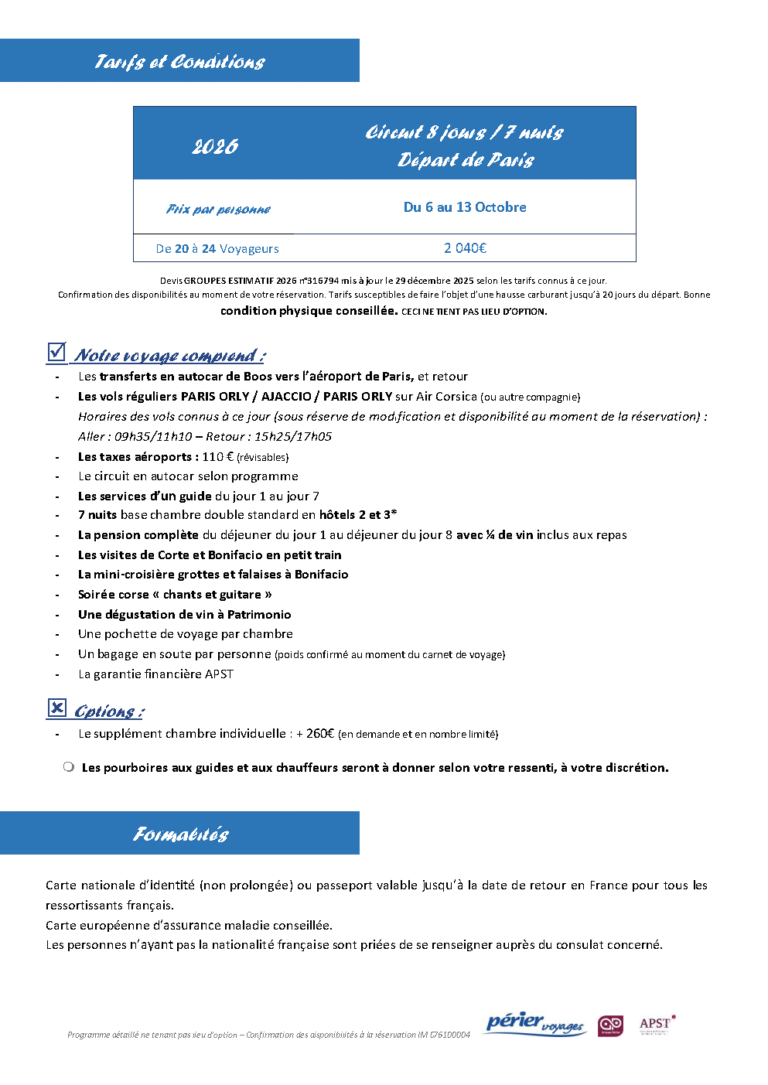 Tour de Corse du 06 au 13 Octobre 2026